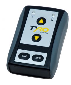 Un mando a distancia por radio que entra en el bolsillo del pantalón y de la camisa. El dispositivo Lyra es la variante más sencilla que fabrica Tyro Remotes. Lyra es un control remoto compacto, ligero y resistente al agua (IP 65) con dos canales remotos que pueden ser utilizados en combinación con bombas, cabrestantes, puertas o elevadores de construcción. Lyra es el mando de nivel de especialización inmediatamente anterior al mando Musca. Musca no está limitado a 2 canales, sino que está disponible con 4 y 6 canales.